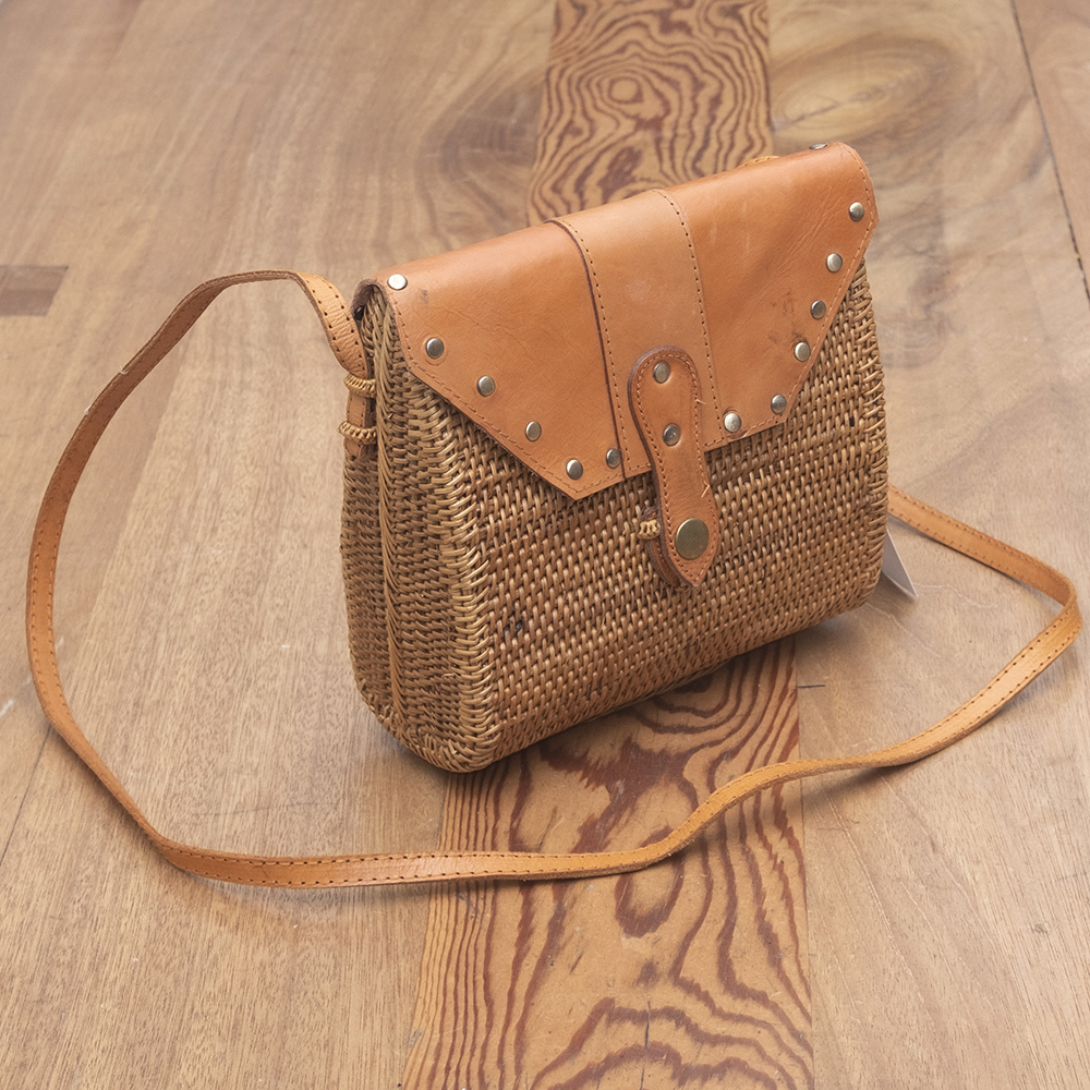 Bag made with rattan and leather