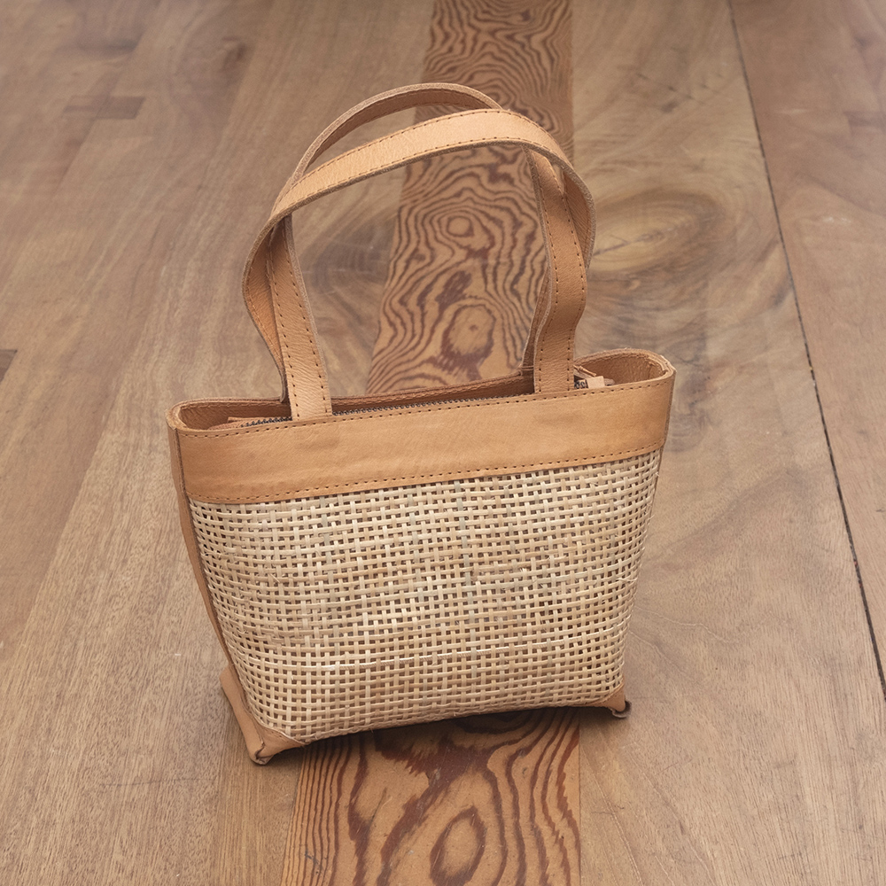 Bag made with rattan and leather